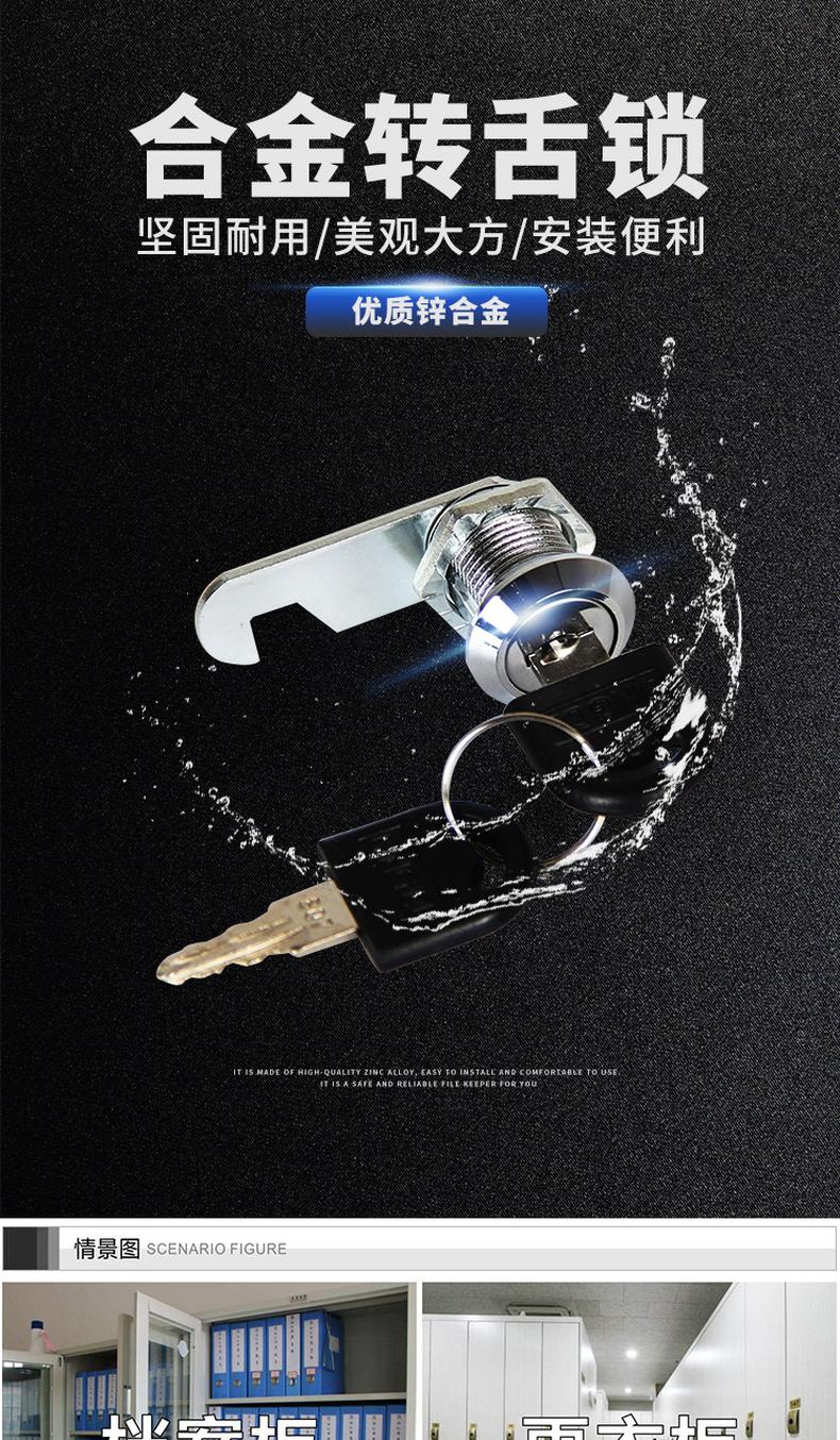 供应商:史泰博 品牌:海斯迪克 产地:中国 重量:0.000KG 销售单位:组 包装清单:铁皮柜锁芯文件柜锁 转舌锁*1