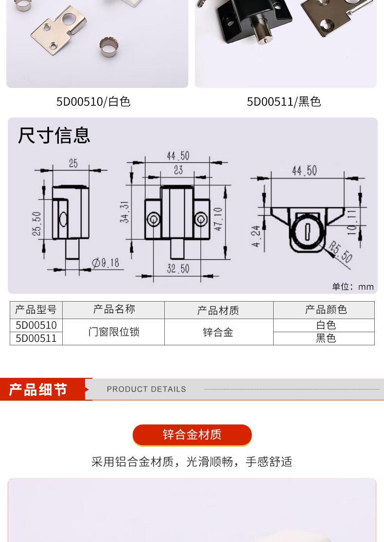 • 安赛瑞 5D00511 门窗限位锁 推拉移门防开安全锁 47.1x44.5mm 黑色按个销售