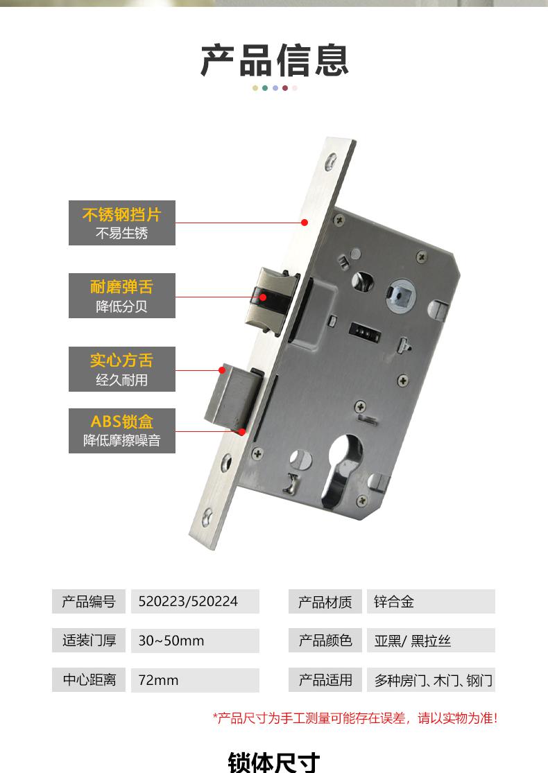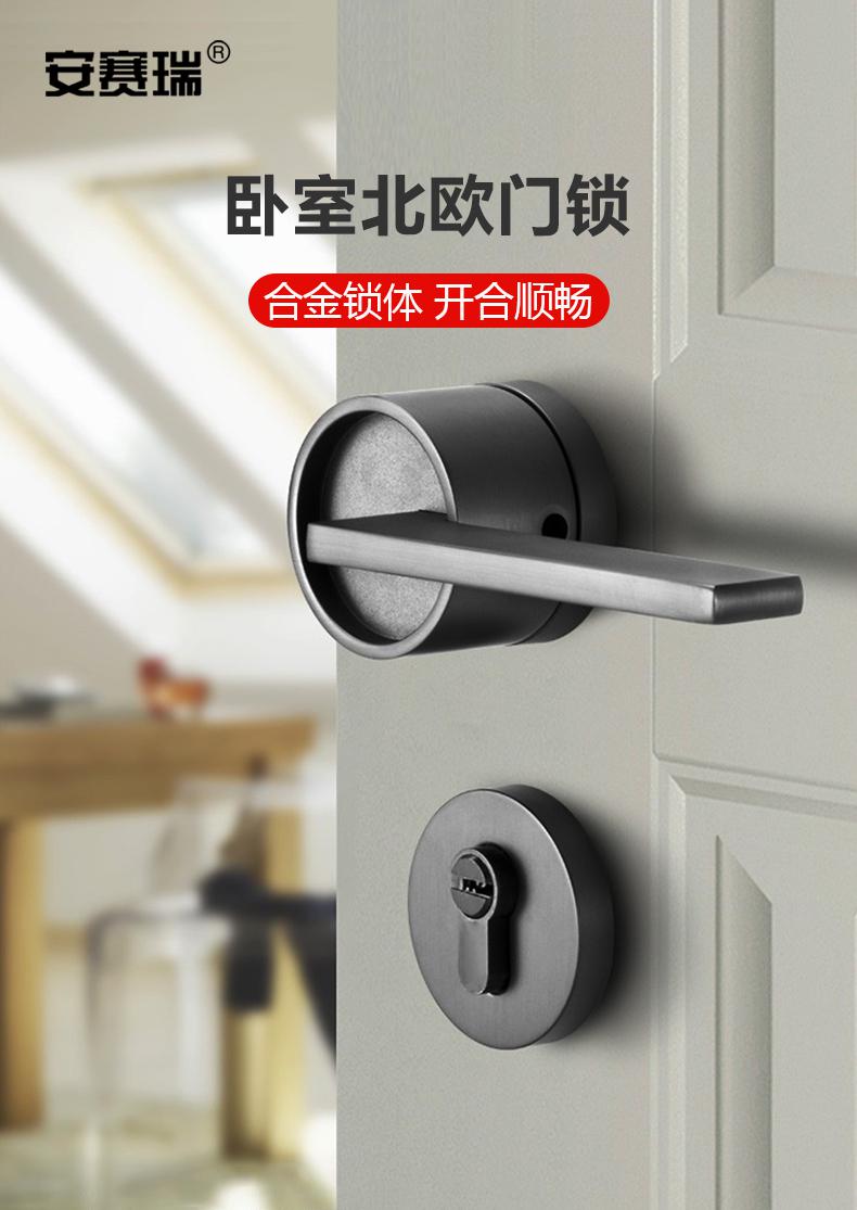 安赛瑞 520223 室门锁 后现代简约实木房门低噪音锁 亚黑按个销售   收藏