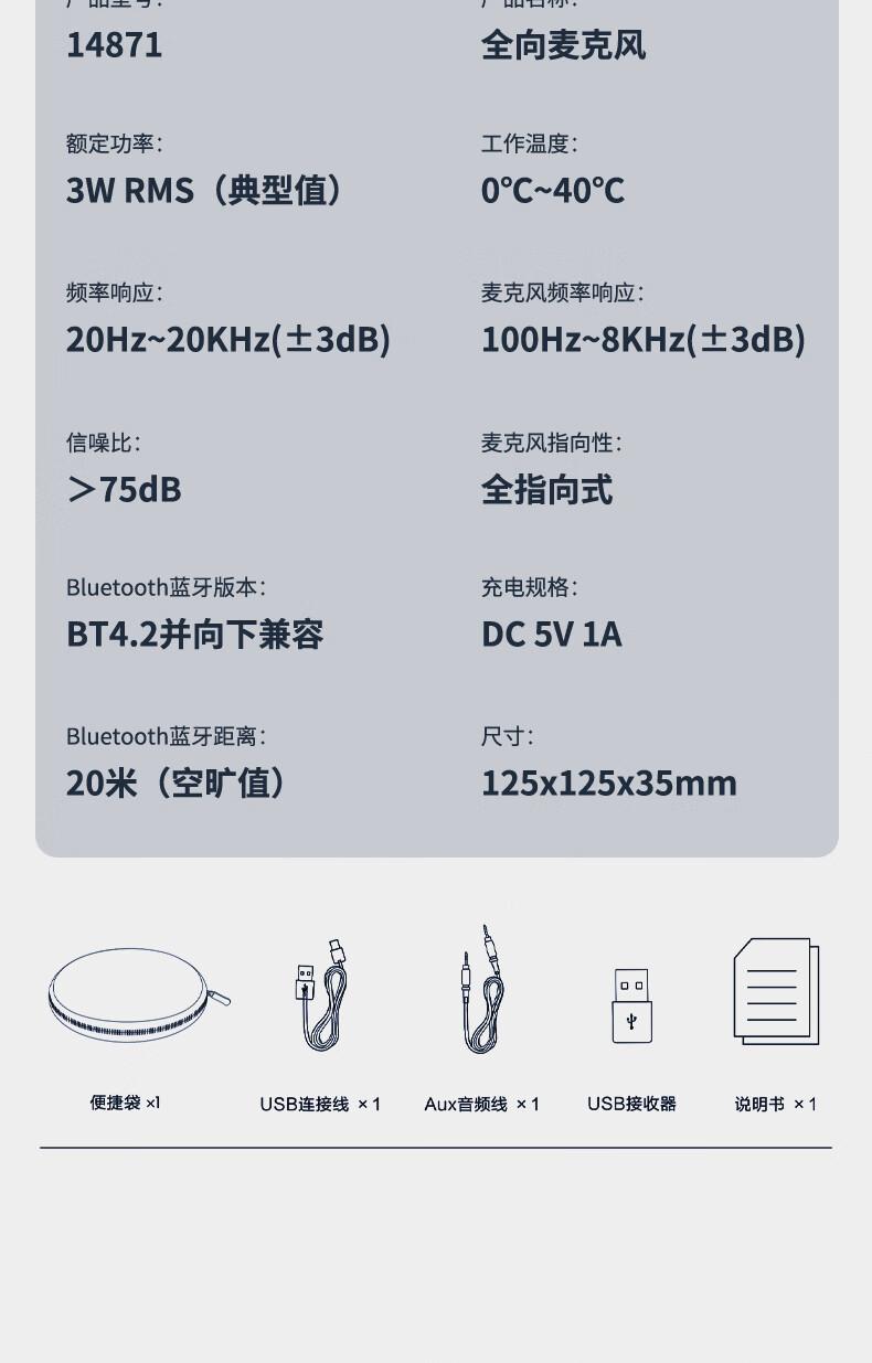 | 包装清单 | 14871智能降噪版无线拾音器*1 |