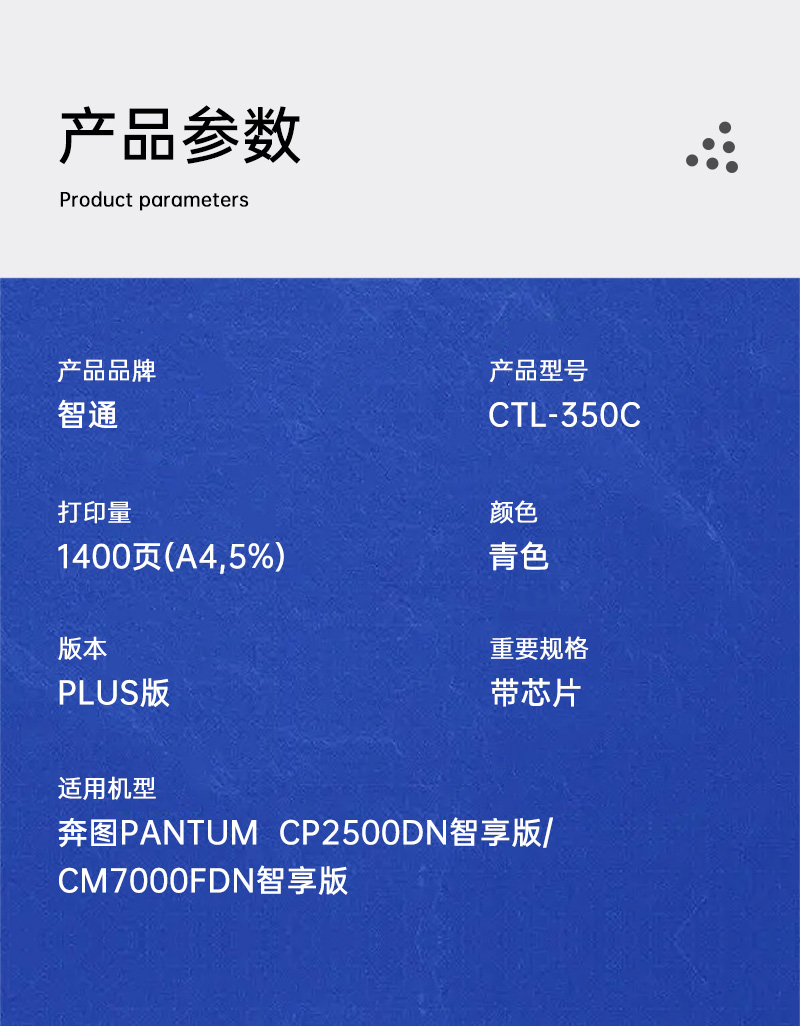 | 适用机型 | 奔图PANTUM CP2500DN智享版/CM7000FDN智享版 |
