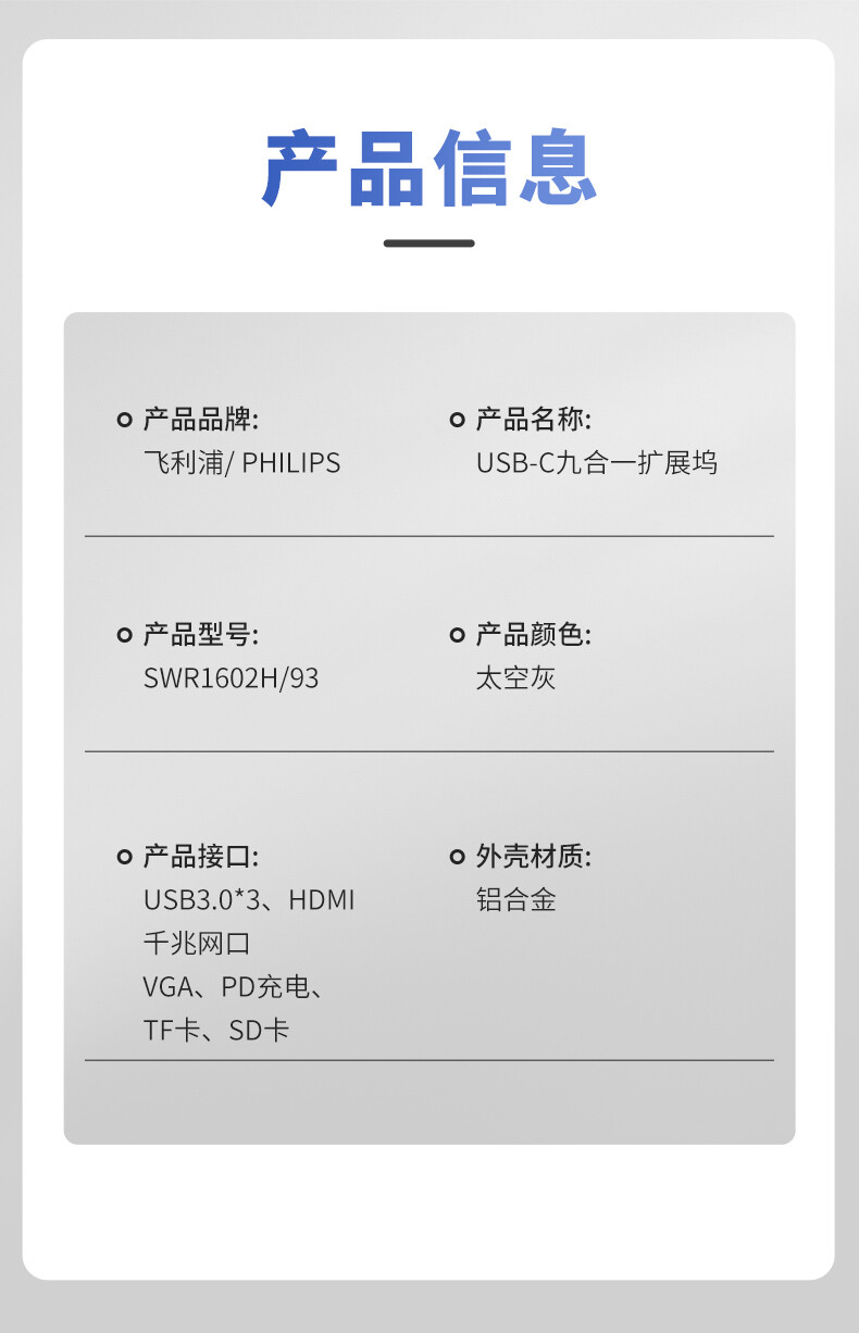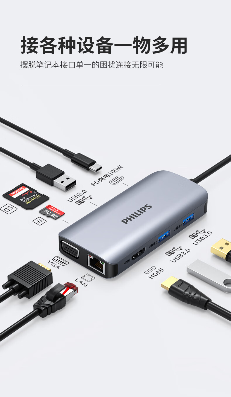 适用接口 | HDMI,USB3.0,雷电3,Type-C,网口,VGA,SD/TF,PD充电 |