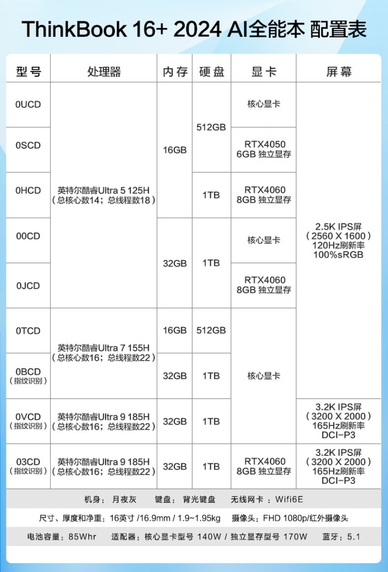 | 处理器型号 | 见详情页 |