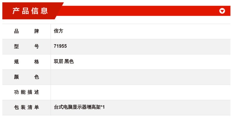 倍方 71955 台式电脑显示器增高架 双层 黑色按个销售   收藏