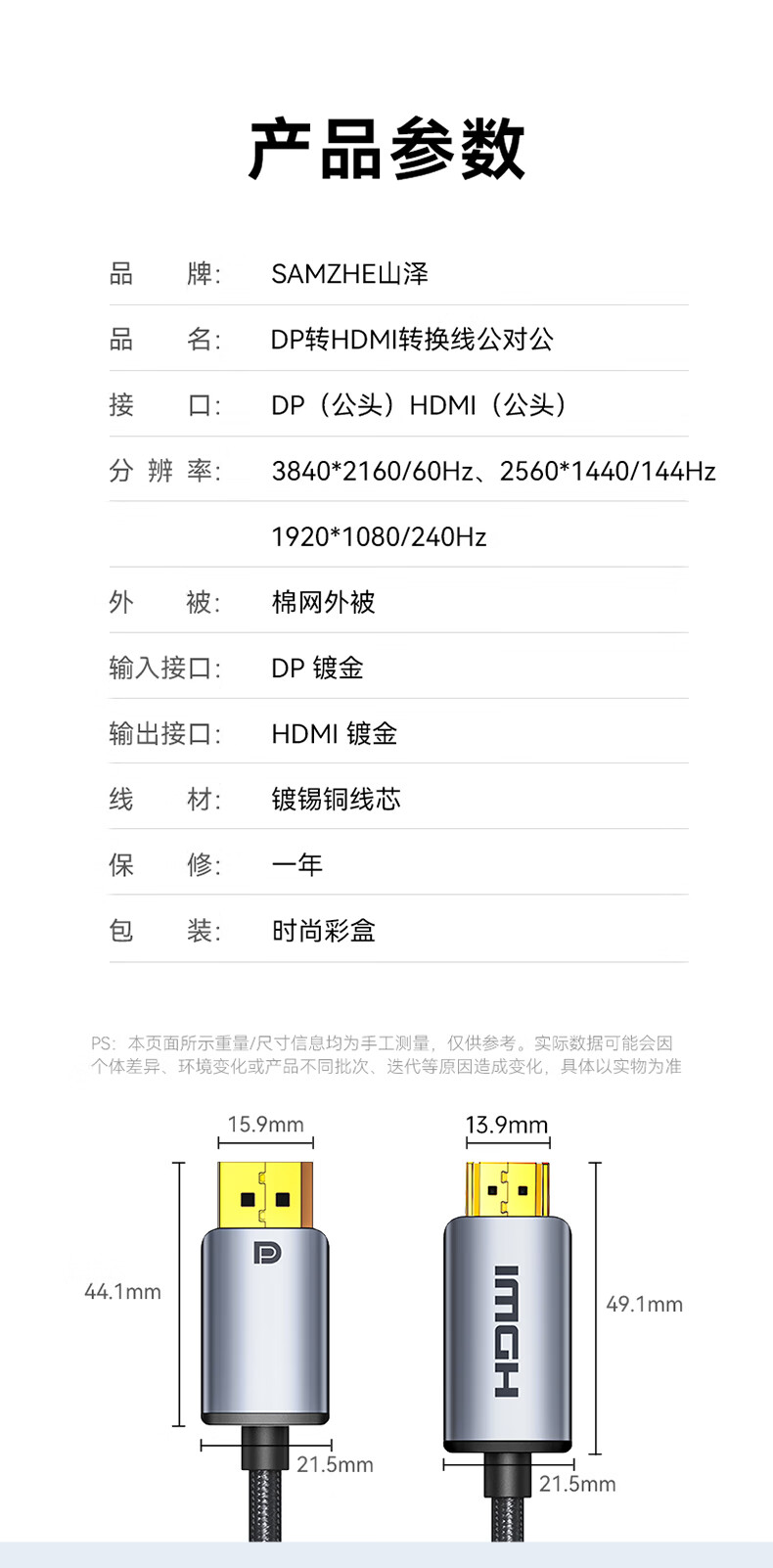 | 线缆长度 | 见详情页 |