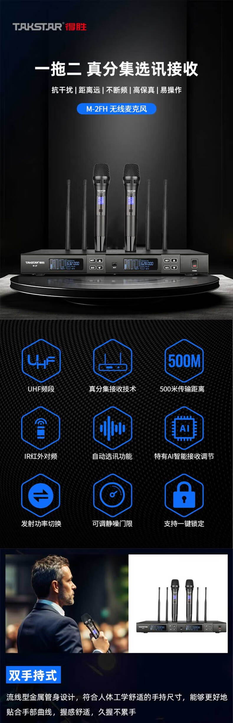 • 得胜 M-2FH 无线麦克风 7W按台销售