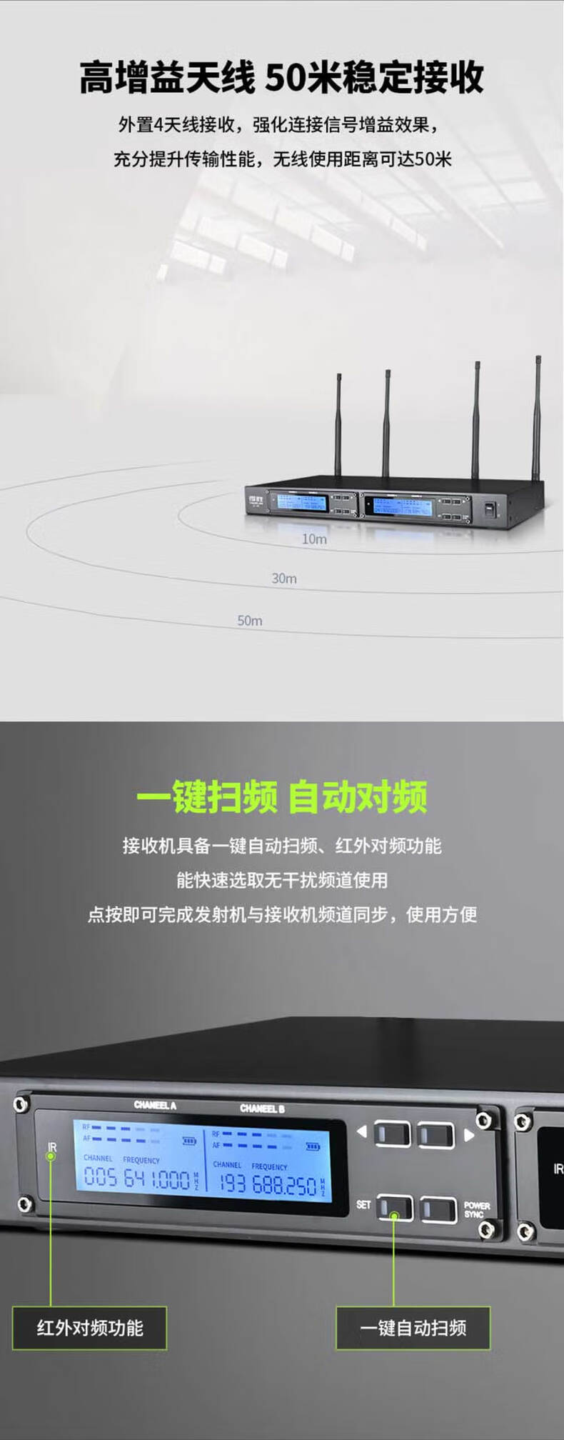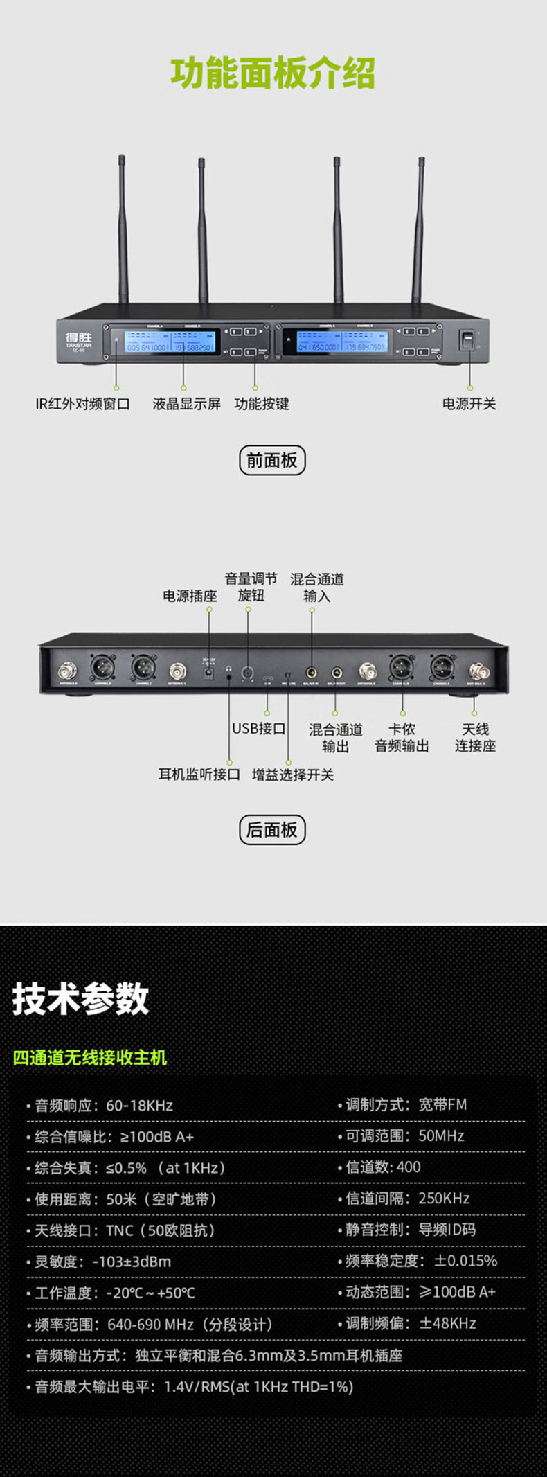 • 得胜 SC-4R 无线麦克风主机 50MHz按台销售