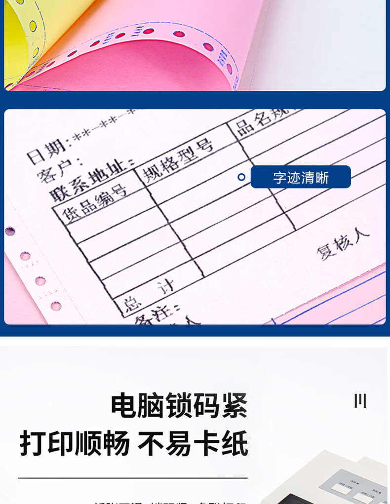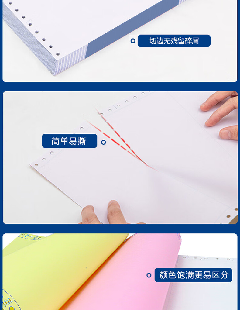 • 蓝鸟 241-3 电脑打印纸 1000页/件彩色三联撕边二等分按件销售