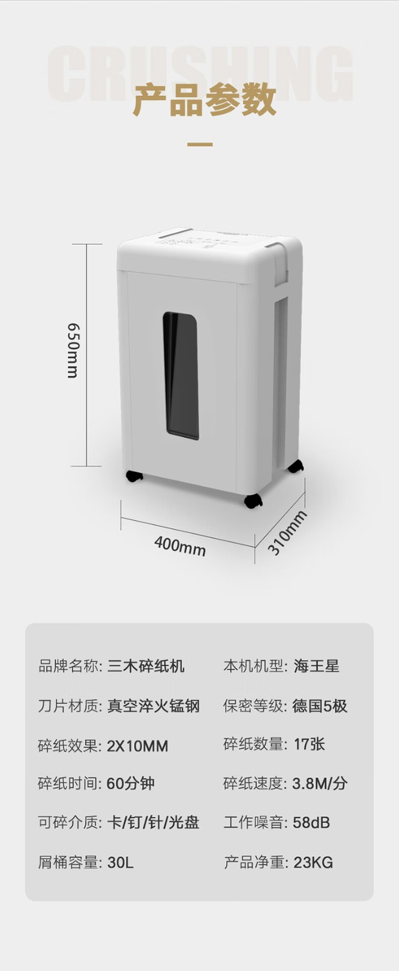| 碎纸桶容量 | 30L |